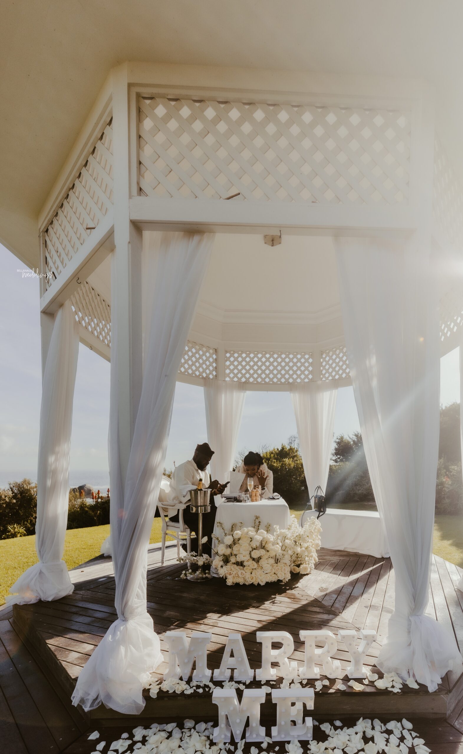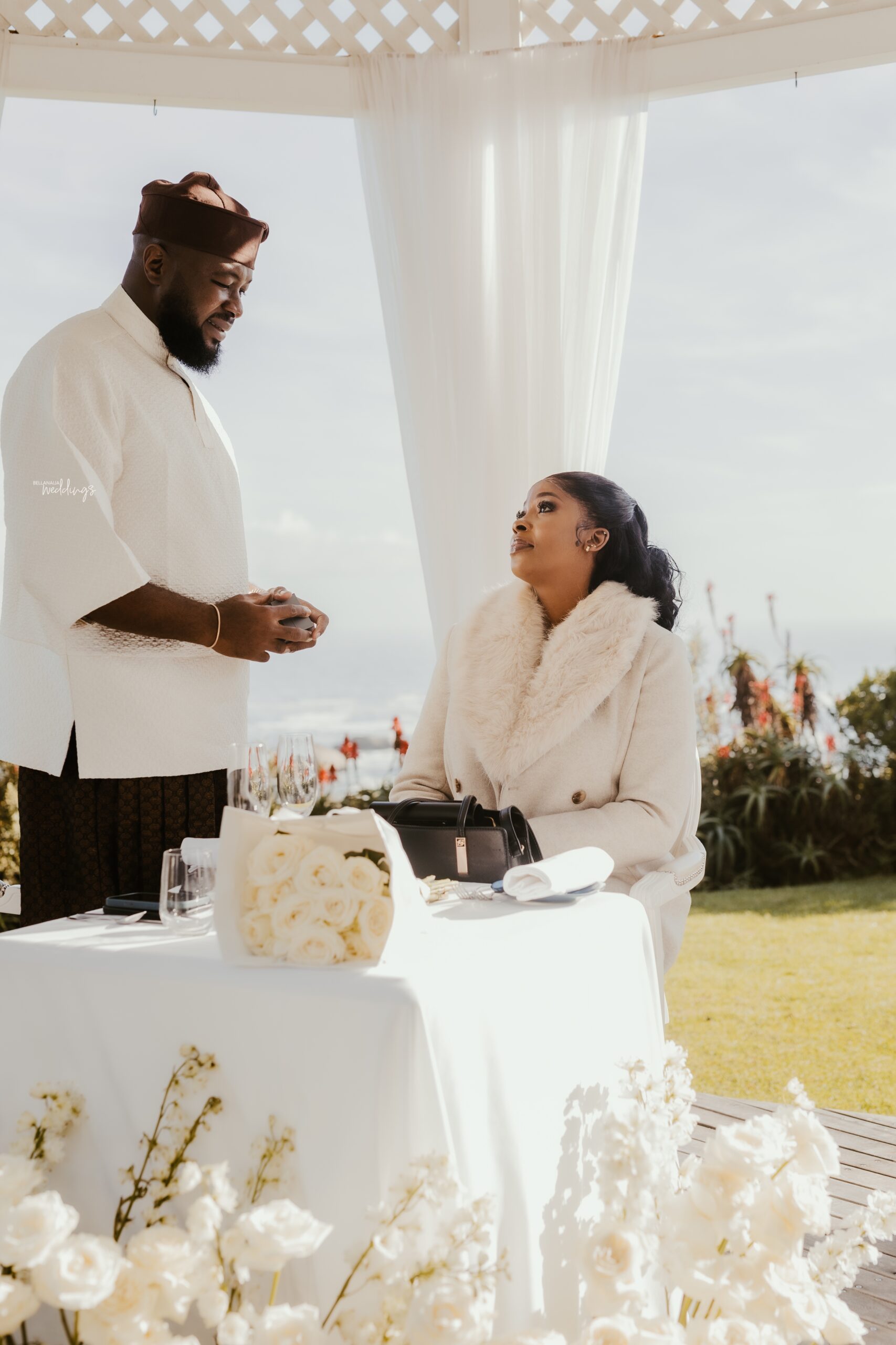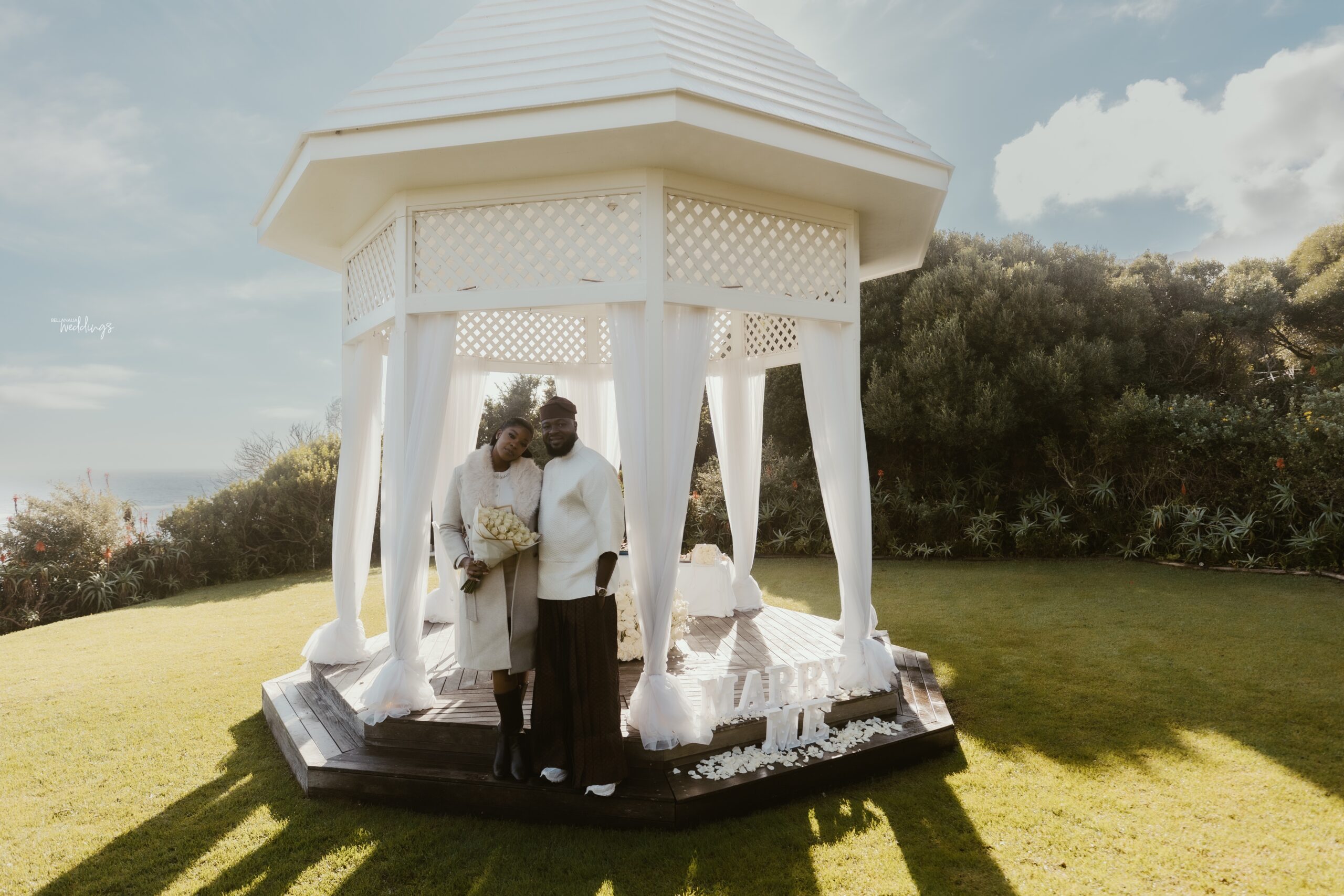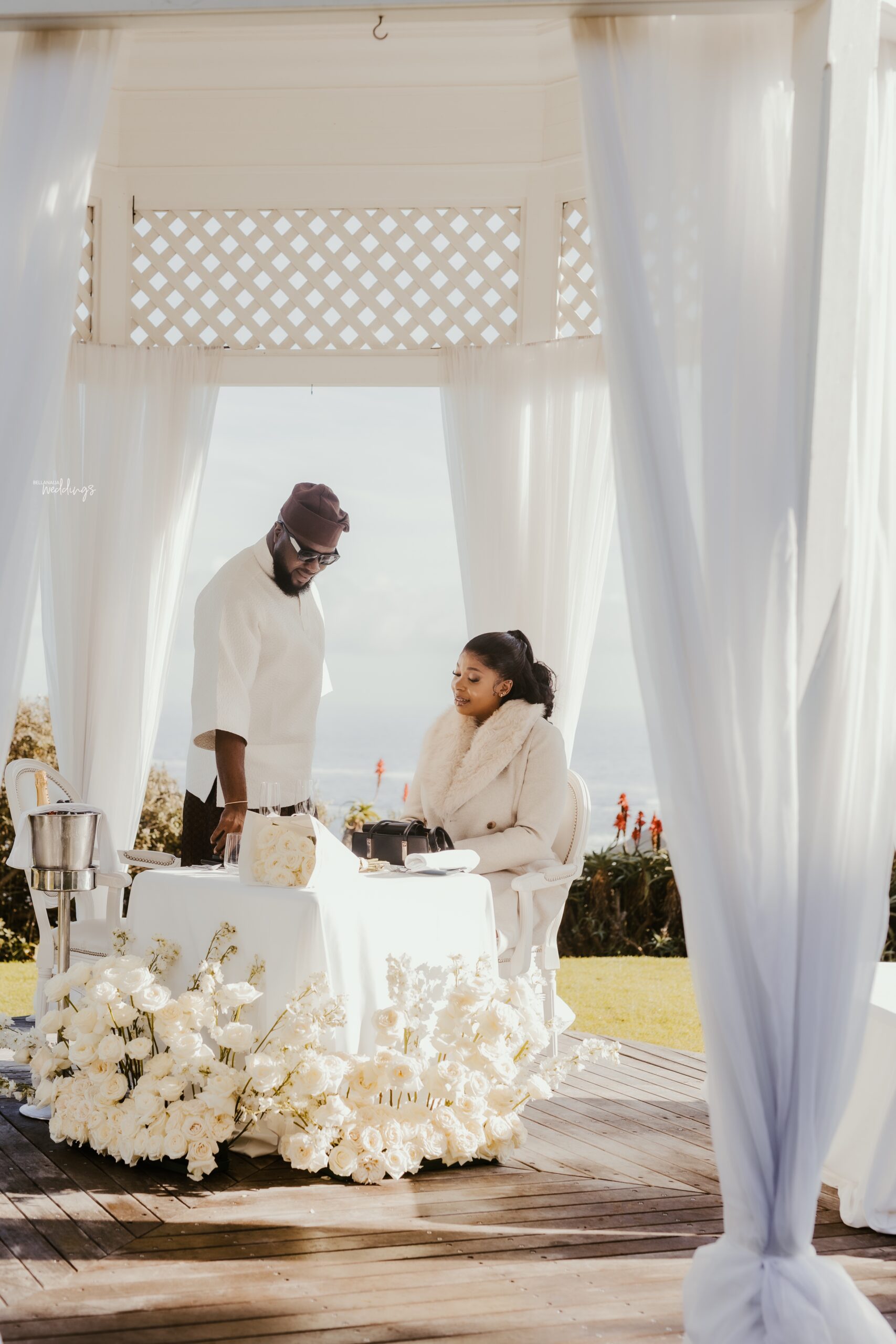 Stacy did not see this coming, even from a mile away. She and Abod had already started wedding preparations, but what she didn’t know was that Abod had been working with his sister the whole time to deliver something truly special to her. So imagine her surprise when he led her up the beautiful mountains of Cape Town in a helicopter ride for an unforgettable proposal. She was in complete shock! Waiting for them was a breathtaking white patio set-up, decorated with white flowers, all set against the breathtaking views of the ocean and mountains. In that beautiful moment, Abod got down on his knee and asked that life-changing question, and Stacy said yes! Now wedding bells are ringing, and forever is in the air. Their deep bond and pure love have led them here, and it’s so evident in their elegant, heartwarming proposal photos. They will forever cherish this lovely moment, and being able to share in their joy simply warms our hearts. 😍